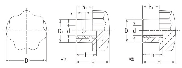 JS.102009 星形把手 顏色:亮光黑 材質:酚醛樹脂(膠木) 用途:適用于各類機械裝備、五金工具、舞臺燈光設備等行業(yè) 特性:光澤感強、外形美觀、機械強度高、堅固耐用、標準化使用、安裝簡便。