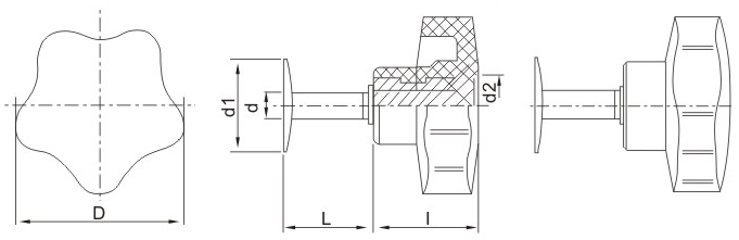 JS.102018 壓片五星把手 顏色:亮光黑 材質:酚醛樹脂(膠木) 用途:適用于玻璃機械及其他機械設備、五金工具等行業(yè) 特性:光澤感強、外形美觀、機械強度高、堅固耐用、標準化使用、安裝簡便。