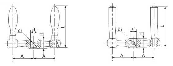 JS.103022 雙柄對重手柄 顏色:亮鉻 材質(zhì):鋼 用途:適用于各類機械上緊固定位調(diào)節(jié) 特性:鍍鉻飾面、外形美觀、機械強度高、堅固耐用、標(biāo)準(zhǔn)化使用、安裝簡便