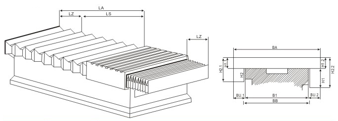標(biāo)準(zhǔn)護(hù)罩使用在機(jī)床高立柱和大型機(jī)床長導(dǎo)軌上,結(jié)構(gòu)合理,行走均勻,堅(jiān)固耐用。