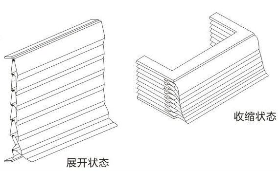JS.107007 盔甲式防護(hù)罩 盔甲式不銹鋼機(jī)床防護(hù)罩的每個(gè)折層能經(jīng)受強(qiáng)烈的振動(dòng)而不變形,同時(shí)應(yīng)用在風(fēng)箱上,以900℃高溫而仍保持原有的狀態(tài),他們之間彼此支持,起著阻礙小碎片滲透的作用。